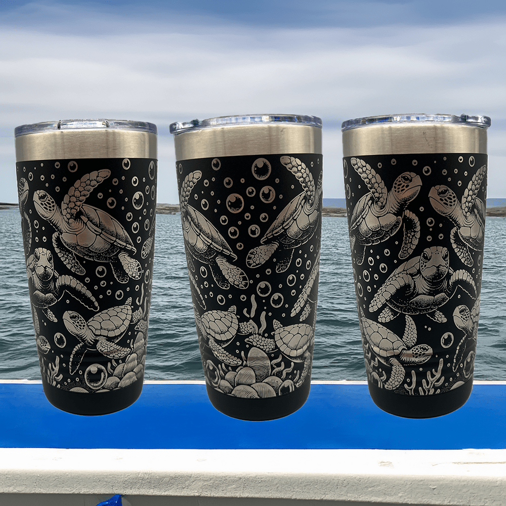 20 oz. Black Stainless Steel Tumbler with custom Turtle Life wrap.